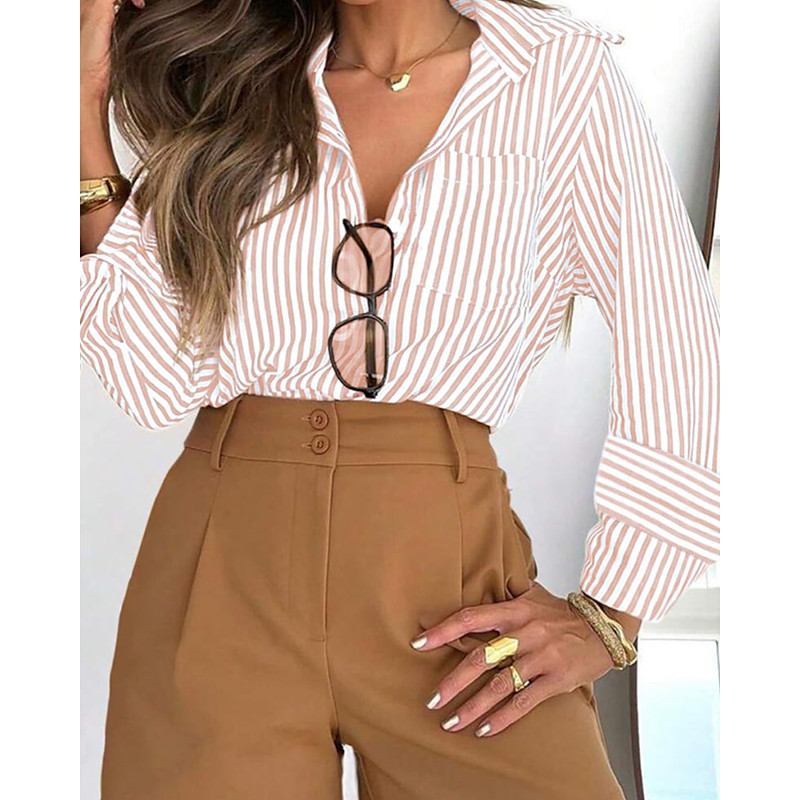Women's Shirt Blouse Striped Casual Long Sleeve Shirt Collar Regular Tops Daily Holiday Going out Buttons Black Yellow Pink Red Orange Summer Spring