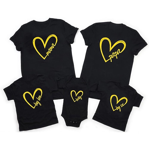 Sguardo di famiglia maglietta Set famiglia Cotone Con cuori Alfabetico Strada Stampa Nero Bianco Grigio scuro Manica corta Mamma e me abiti Attivo Abiti coordinati