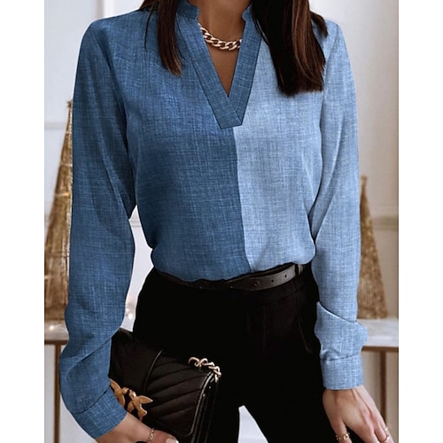Per donna Camicia Elegant Raso/Satin Blusa Blocco di colori Semplice Casual Manica Lunga Scollo a V Top Regolari Quotidiano Ferie Uscire Pizzo Patchwork Blu Nero Bianco Grigio scuro Autunno Inverno