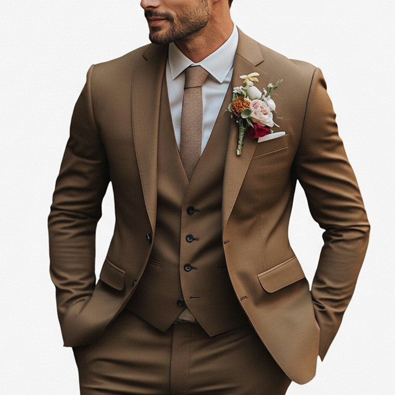 Men's Casual Business Party Suits Notch Lapel White Brown Daily Formal Solid Colored Slim Fit 3 Piece Single Breasted Two-buttons