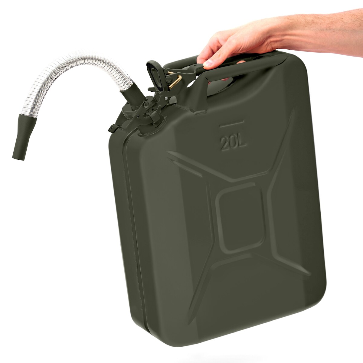 BW® Kraftstoffkanister Metall Benzinkanister 20 Liter mit Ausgießer - Bronzegrün - RAL 6031-F9 - TÜV-geprüft und UN-Zulassung - Made in Europe
