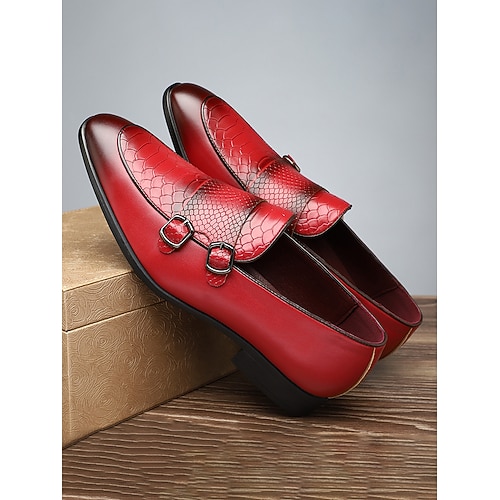 scarpe monk strap rosse in similpelle da uomo: scarpe formali eleganti e alla moda per matrimoni ed eventi speciali