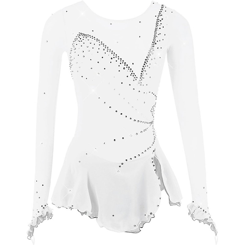 Figure Skating Dress for Girls Solid Color Women Ice Breathable Competition Dance Outfit with Shiny Rhineston