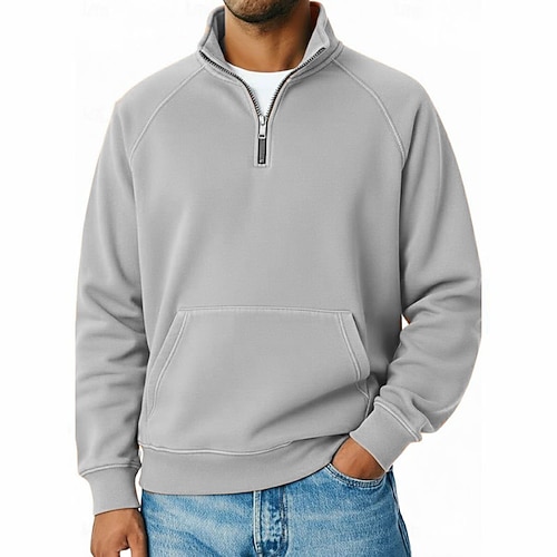 Per uomo Maglia Felpa con zip corta Aalbicocca Nero Bianco Blu marino Cammello Mezza zip Semplice Stampato Tasca Frontale Sport Outdoor Quotidiano Ferie Poliestere Streetwear Retrò Casual Autunno