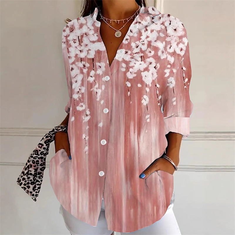 Women's Shirt Summer Tops Flower Daily Stylish Casual Long Sleeve Shirt Collar Regular Tops Work Daily Holiday Buttons Pink Blue Light Blue Spring Fall