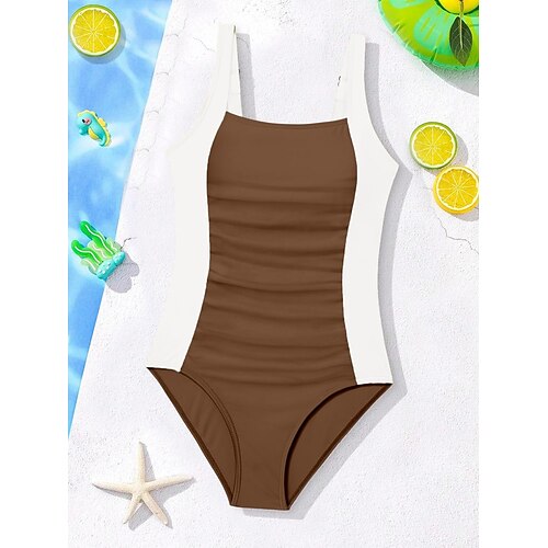 Bambini Ragazze Costume da bagno All'aperto Spiaggia Blocco di colori Vacanza Sport Moda Costumi da bagno Dai 4 anni in su Estate Blu Nero