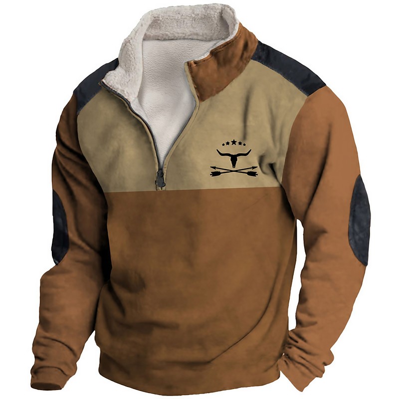 Men's Graphic Color Block Cowboy Sweatshirts Sweatshirt Zip Sweatshirt Long Sleeve Sweatshirt Quarter Zip Daily Basic Casual 3D Print Vacation Holiday Going out Print Fleece Fall Winter