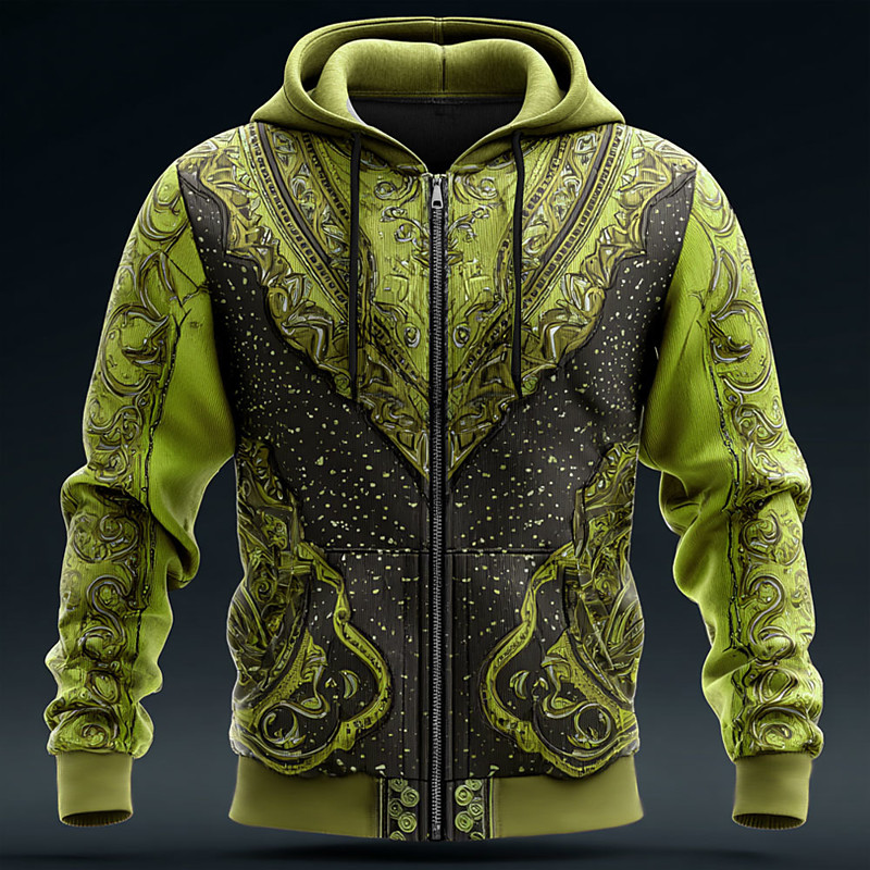 Men's Cowboy Costume Hoodie Jacket Sweatshirt Western Cowboy All Over Print Long Sleeve Zip Vacation Streetwear Yellow Light Green Blue Green Zipper Fall Winter Designer S M L XL XXL XXXL
