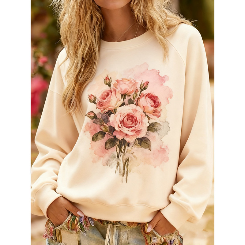 Women's Pullover Sweatshirts Floral Fashion Streetwear Classic Long Sleeve Crew Neck Round Neck Regular Tops Dailywear Casual Print Beige Spring Fall