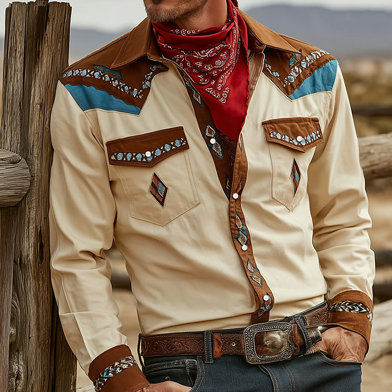 Men's Shirt Western Shirt Cowboy Shirt Long Sleeve Vintage Outdoor Street Casual Daily Fall Winter Turndown Buttons Print Blue Brown Gray