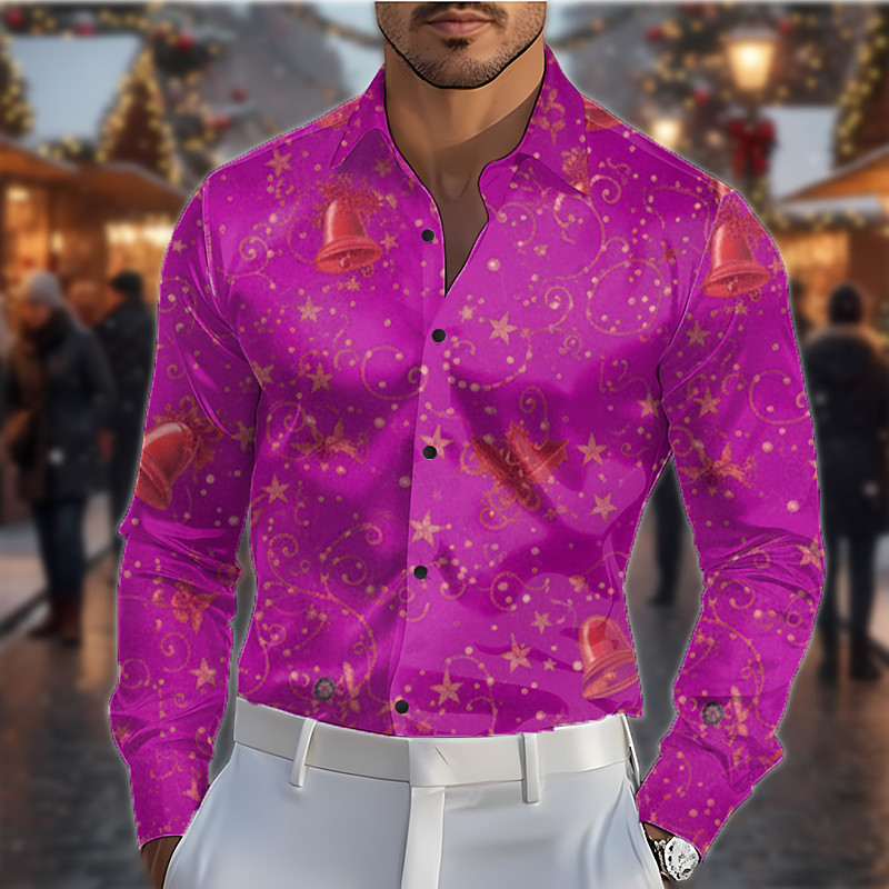 Christmas Men's Floral Print Christmas Baubles Shirt Satin Shirt Dress Shirt Long Sleeve Fashion Casual Outdoor Holiday Spring Fall Turndown 3D Print Button Up Shirts Red Purple Rose Red
