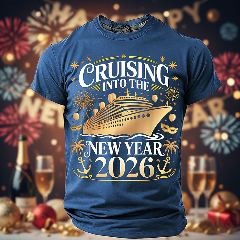New Year Men's Happy New Year Fireworks Cruise Ship T Shirt Short Sleeve T shirt 3D Print Crew Neck Shirt Exaggerated Designer Artistic Party Street Club Blue 1# Black Red Fall Winter Clothing Apparel
