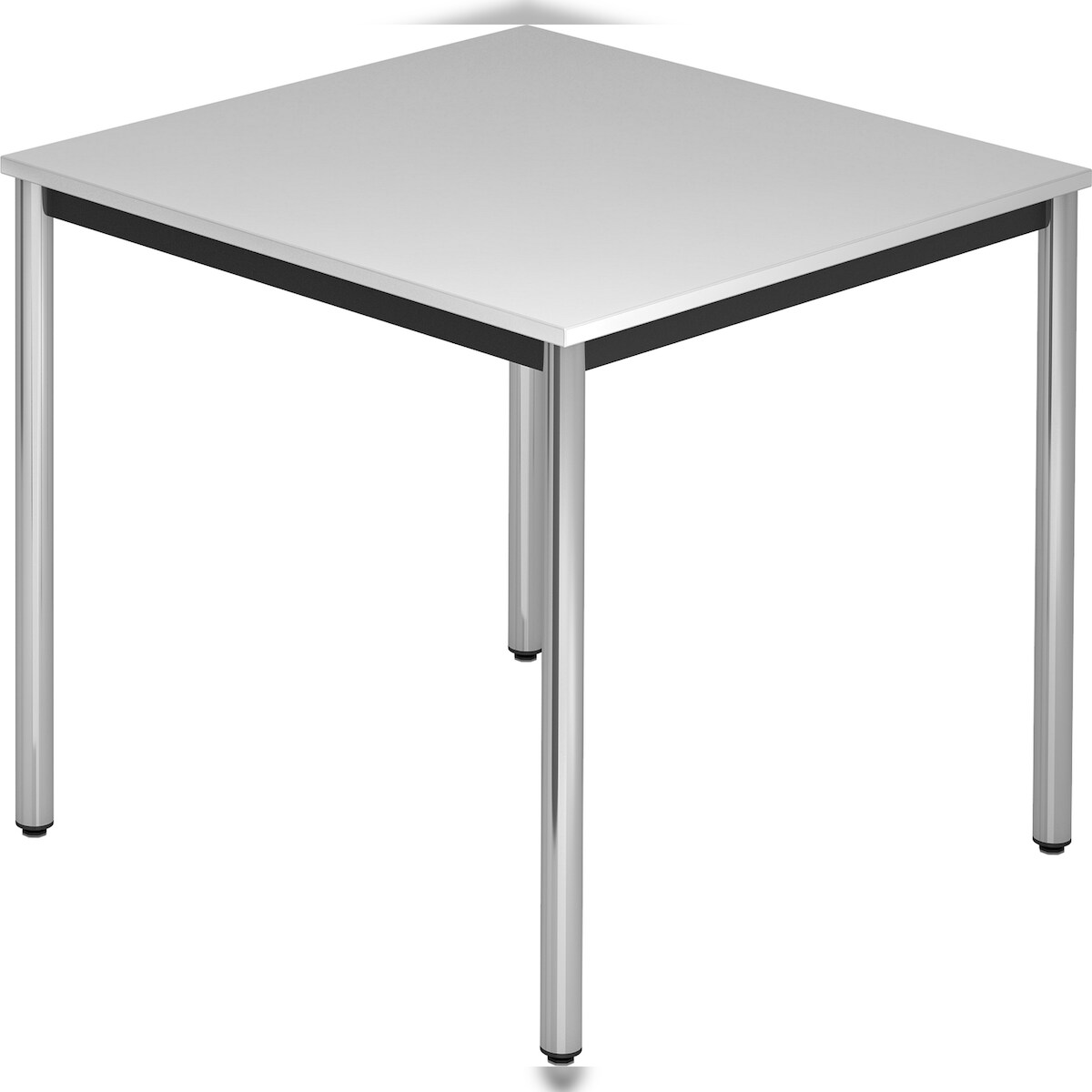 bümö Multifunktionstisch grau, Tisch 80 x 80 cm, Tischfuß verchromt - einfacher Tisch klein, Besprechungstisch System D-Serie, Konferenztisch,