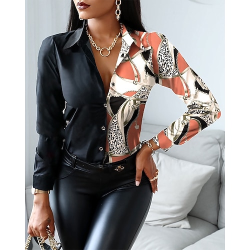 Per donna Blusa Top Eleganti Tinta unica Floreale Grafico Elegante Vintage Signore Manica Lunga Scollo a V Top Regolari Quotidiano Lavoro Uscire Arricciato Patchwork Bottoni Bianco e nero Bianco