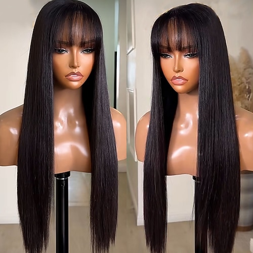 Capelli umani 5x5 Chiusura 13x4 Fronte in Pizzo Parrucca Con Frangia Capelli brasiliani Liscio Naturale Parrucca 150% 180% Densità dei capelli con Capelli di Bambino Liscio Attaccatura Naturale 100