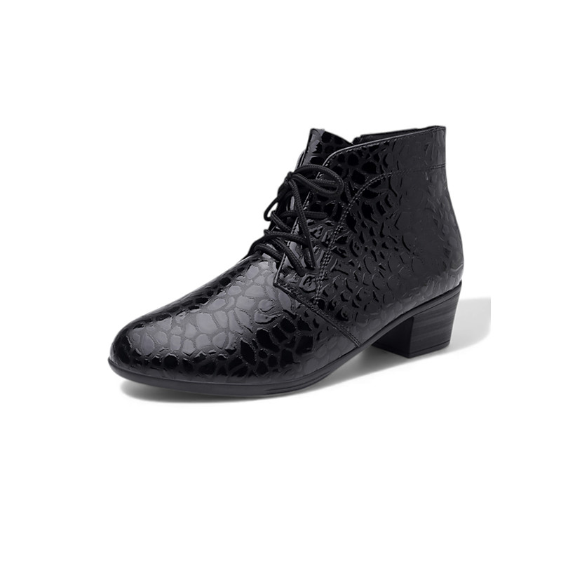 Women's Fleece-Lined Ankle Dance Boots - Warm Lace-Up Short Boots with Side Zipper Stable Block Heel for Professional Ballroom, Latin Winter Dance Training