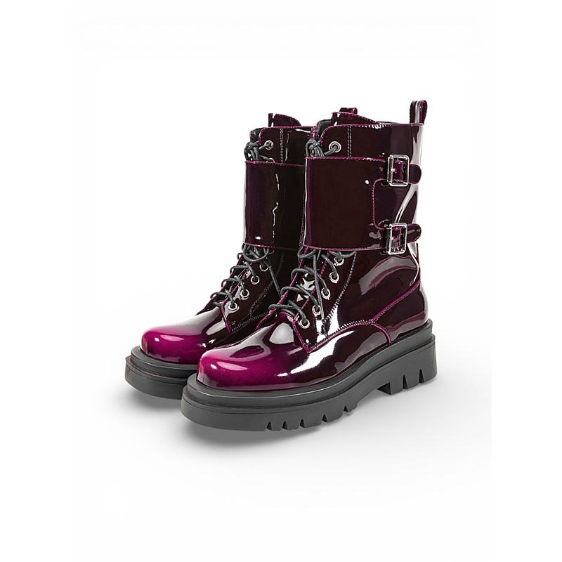 Women's Green Patent Leather Combat Boots with Buckle Detail and Chunky Sole, Bold St. Patrick's Day Boots for Festivals, Parades, Casual Street Style and Outdoor Adventures