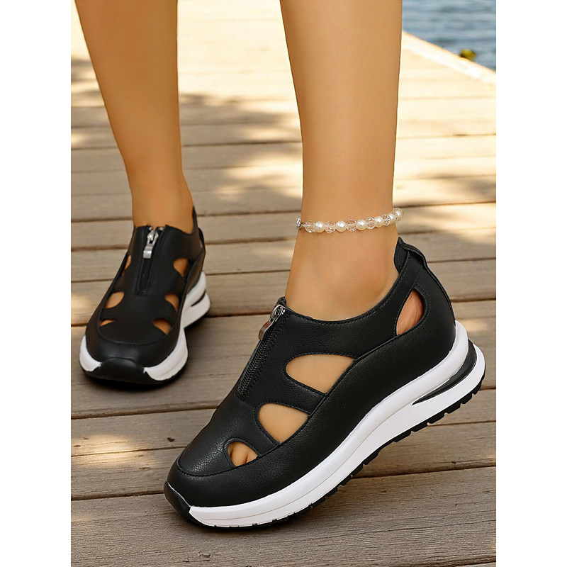 Women's White Sport Sandals with Cutout Design, Zip-Up Lightweight Shoes for Comfort Walks, Active Travel and Daily Errands