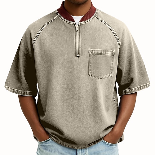 Per uomo Maglietta Manica Corta Senza colletto Il giro Estate Tutte le stagioni Tinta unica Quotidiano Casual Stile da Strada Cerniera Oversize Ampio All'aperto Streetwear Casual Blu chiaro Nero