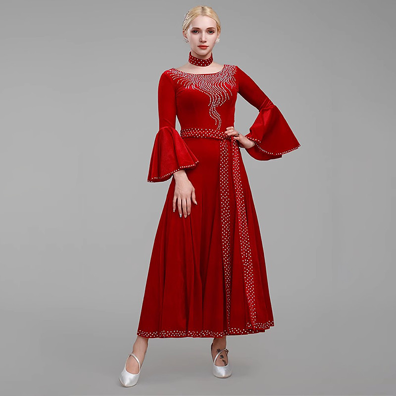 Ballroom Dance Dress Splicing Crystals / Rhinestones Women's Performance Party Long Sleeve Pleuche