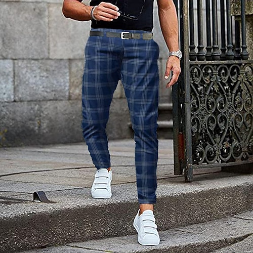 Per uomo Pantaloni Chino Pantaloni da jogger Pantaloni eleganti scozzesi Tasche Reticolo Traspirante Morbido Attività commerciale Informale Giornaliero Di tendenza Streetwear Nero Verde chiaro