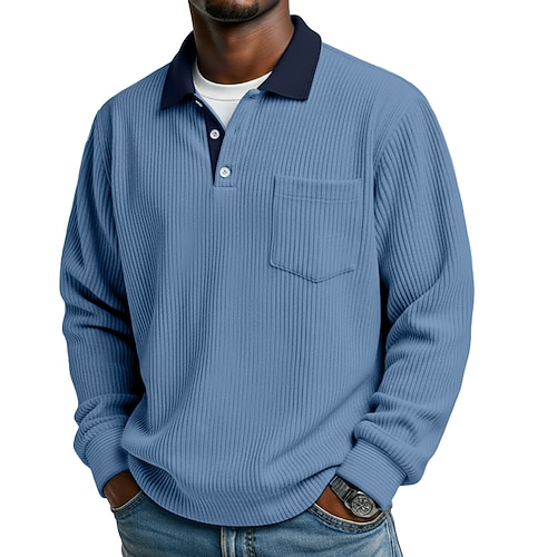 Per uomo Polo Camicia di Velluto a Coste Casuale Sportivo Bavero Manica Lunga Moda Essenziale Blocco di colori Testurizzato Bottoni Caldo Autunno Inverno Vestibilità regolare Nero Blu scuro Verde