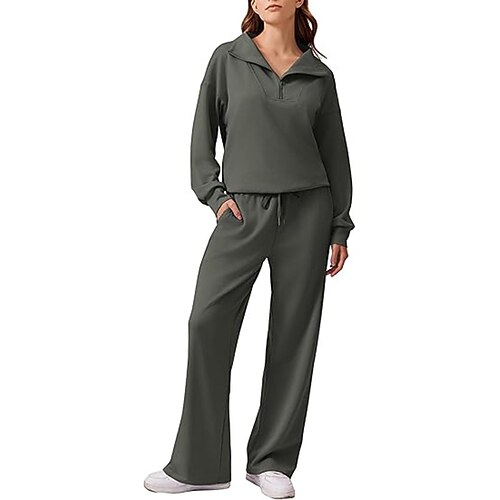 Per donna Tuta da 2 pezzi Set di tute da ginnastica Abbigliamento sportivo Spacco Tinta unita Completo Abbigliamento Autunno Nero Bianco Lavoro All'aperto Viaggio Leggero Di tendenza Manica Lunga