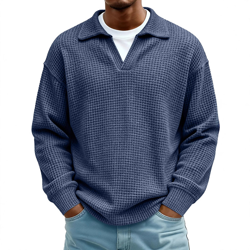 Men's Golf Polos Shirts Waffle Knit Polo Shirt Casual Business V Neck Long Sleeve Fashion Basic Solid Color Knitting Fall Winter Regular Fit Black White Light Green Red Navy Blue Sky Blue Golf Polos