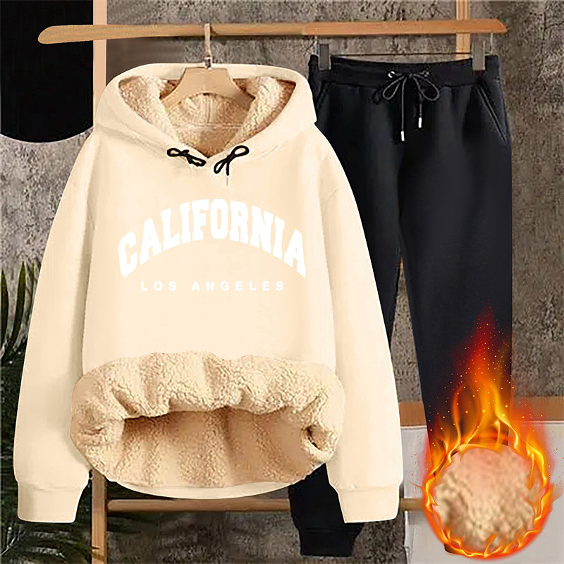 Women's Warm Daily Two Piece Sets Tracksuit Pants Sets Long Sleeve Hooded Graphic Letter Drawstring Print Casual Daily Black Pink Dark Pink Fall Loose Fit