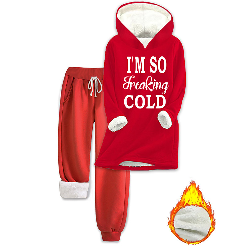 Women's Warm Daily Two Piece Sets Tracksuit Pants Sets Long Sleeve Hooded Graphic Plain Letter Drawstring Print Casual Daily Black Dark Pink Red Fall Regular Fit