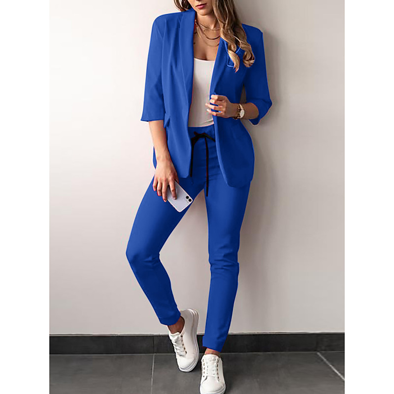Women's Fashion Formal Blazer Suits Half Sleeve Solid Color Drawstring Work Business Dark Grey Black Dusty Rose Spring Fall Regular Fit