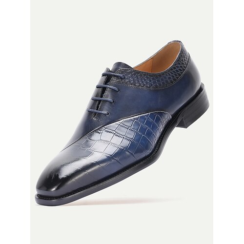 Blaue Derby-Schuhe für Herren aus Leder mit Krokodilprägung – luxuriöses Schnallendesign mit hochwertiger Verarbeitung, ideal für formelle Anlässe, Hochzeiten und das Büro.