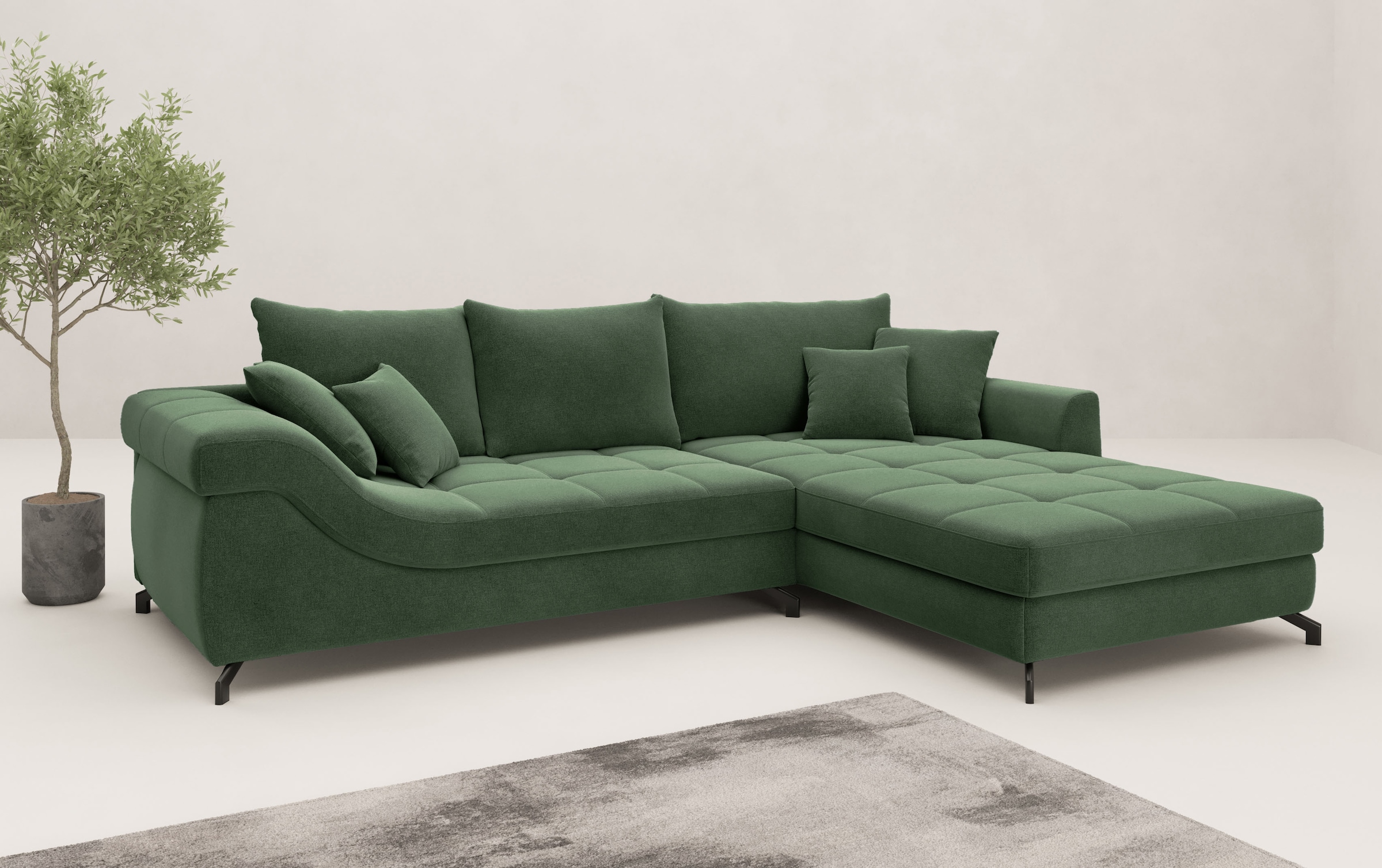 Ecksofa MR. COUCH "Taylor, L-Form, wahlweise mit Kaltschaum", miami 12 grün, B:317cm H:93cm T:226cm, 90% Polyester / 10% Nylon, Sofas, wahlweise mit Kaltschaum bis 140 kg pro Sitzplatz belastbar