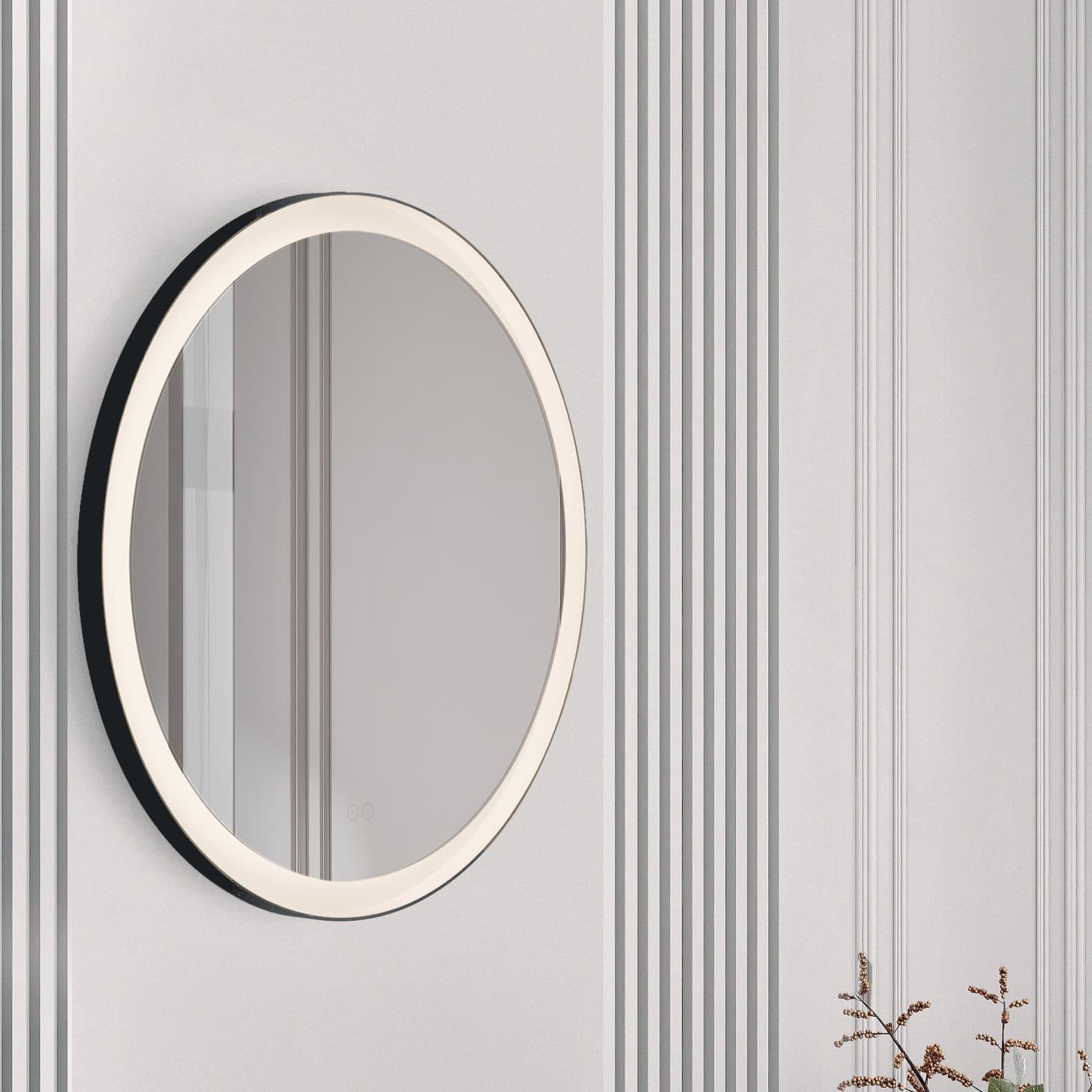 Nova Luce Ural - miroir avec éclairage - Ø 80 x 3,5 cm - 29W LED inclus - IP44 - noir sablé et blanc