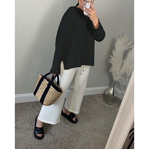 Per donna Maglietta Grafico Semplice Elegante Essenziale Classico Manica Lunga Girocollo Top Regolari Quotidiano Sportivo Uscire Spacco laterale Nero Bianco Arancione Verde Rosso rosa Estate