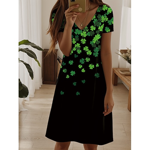 Per donna Mini Abito Vestito T-Shirt Vestito Estivo Abito a trapezio Vacanza Casual Boho Spiaggia Uscire Vestibilità regolare Floreale Grafico Trifoglio Manica Corta Scollo a V Nero Bianco Verde
