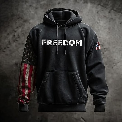 Per uomo Bandiera Americana FREEDOM Felpa con Cappuccio Moda Stile da Strada Vintage Retrò Manica Lunga Con Cappuccio Vacanza Feste Abbigliamento casual alla moda Festival Nero Stampa Autunno Inverno