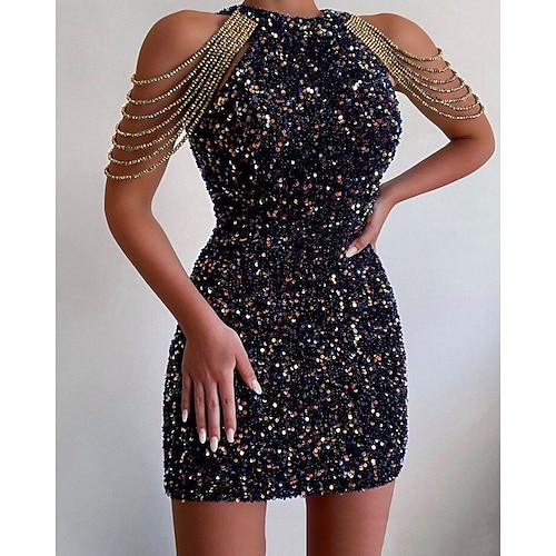 Per donna Mini Abito Abito con Paillettes Vestito da Festa Abito da Cocktail Tubino Moda Moderno Festa serale Feste Occasione speciale Vestibilità regolare Semplice Senza Maniche All'americana Nero