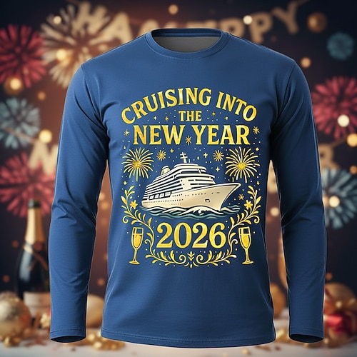 Capodanno Per uomo Buon anno Fuochi d'artificio Nave da crociera Maglietta Manica Lunga maglietta Stampa 3D Girocollo Camicia Esagerato Designer Artistico Feste Streetwear Club Blu Nero Rosso Autunno