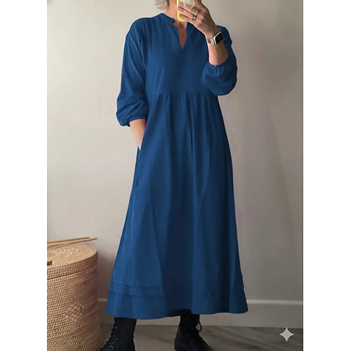 Per donna Abito maxi Abito a Tubino Abito a trapezio Abito aderente e svasato Vacanza Casual Boho Quotidiano Feste Vestibilità comoda Semplice Manica Lunga Scollo a V Blu Nero Rosso Estate Primavera