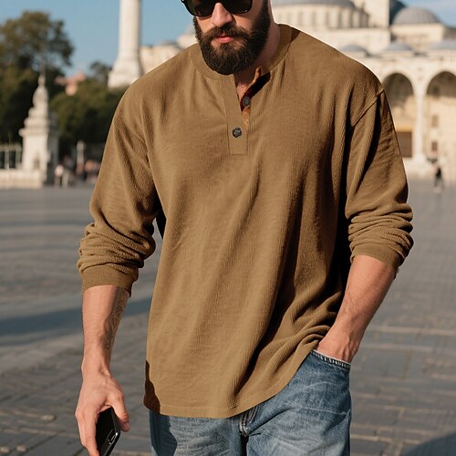 Per uomo Maglietta Camicia di Velluto a Coste Maglia Henley Camicia a Maniche Lunghe Manica Lunga Henley Primavera Autunno Semplice Moda Designer Essenziale Bottoni Vacanza Streetwear Uscire Nero