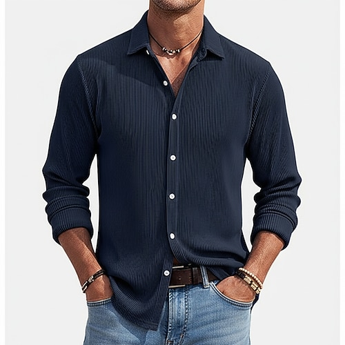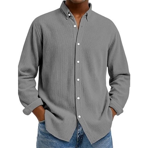 Per uomo Camicia Tessuto Camicia casual Camicia di Velluto a Coste Camicia con Bottoni Nero Bianco Borgogna Blu marino Verde Manica Lunga Semplice Colletto a Camicia Casuale Quotidiano Tasca Frontale