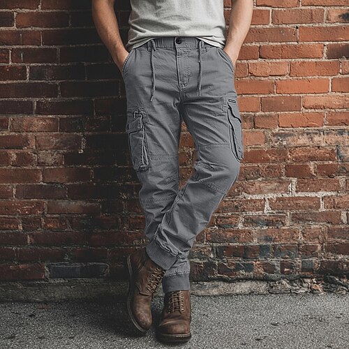 Per uomo Pantaloni Cargo Pantaloni Coulisse Elastico in vita Multi-tasche Semplice All'aperto Traspirante Lunghezza intera Casuale Quotidiano Vacanza Casual Nero Vino Inelastico