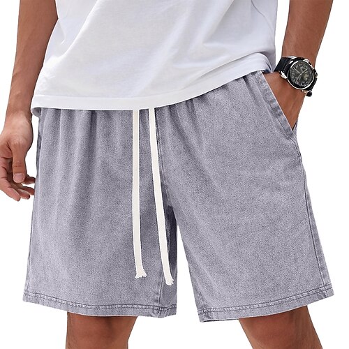 Per uomo 100% cotone Shorts Pantaloncini casual Pantaloncini con lavaggio acido Tasca Elastico in vita Lavato Comodità Traspirante Lunghezza al ginocchio Casuale All'aperto Spiaggia Vacanza Moda Nero