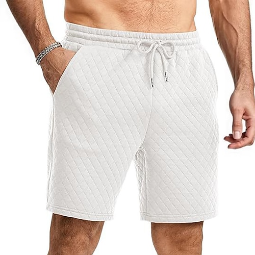 Per uomo Pantaloncini Waffle Shorts Pantaloncini casual Tasca Elastico in vita Puro Semplice Comodità Traspirante Lunghezza al ginocchio Casuale All'aperto Vacanza Vacanza Moda Nero Bianco