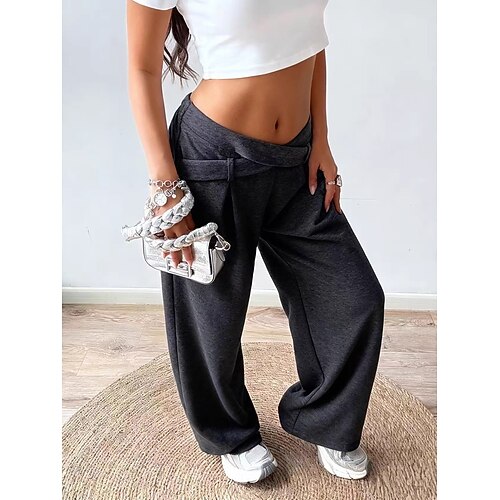 Per donna Gamba larga Chinos Vacanza Moda Streetwear Lunghezza intera Vita Alta Semplice Comodo Comodità Morbido Micro-elastico Quotidiano All'aperto Streetwear Nero Grigio scuro Grigio Primavera