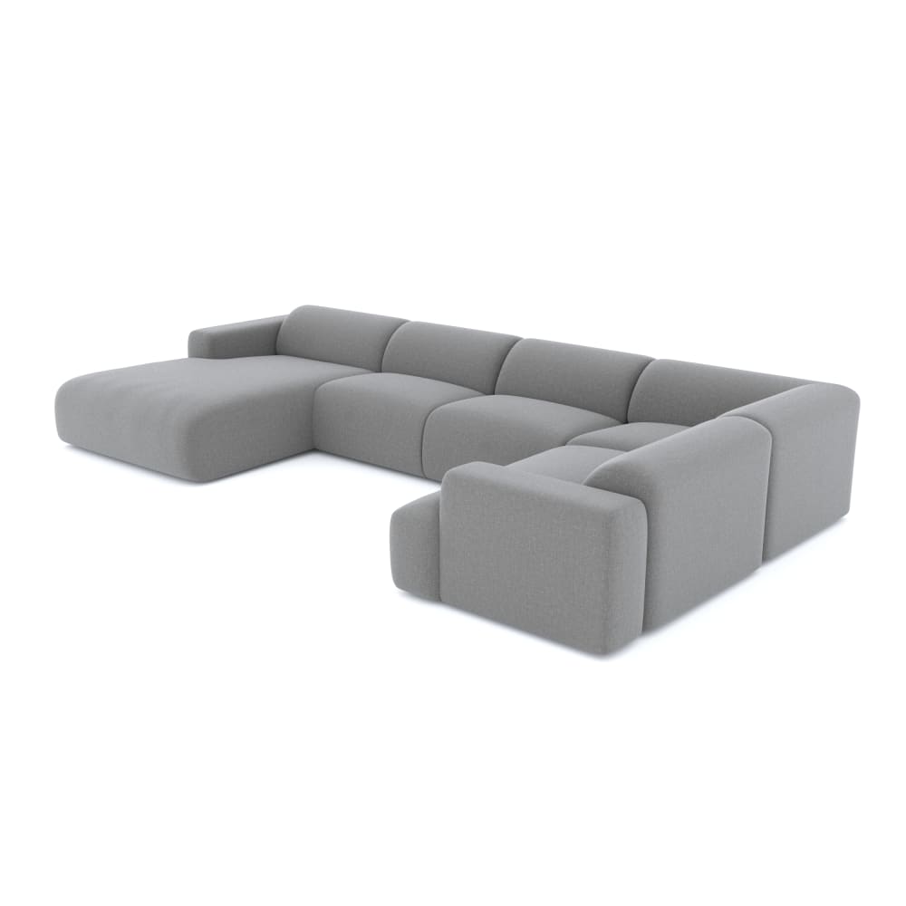 Divano panoramico 7 posti sinistro in tessuto tramato grigio chiaro