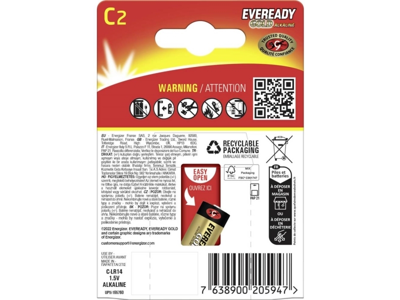 Energizer EVEREADY GOLD batteri C LR14 1,5V CP2 EU 2 stk