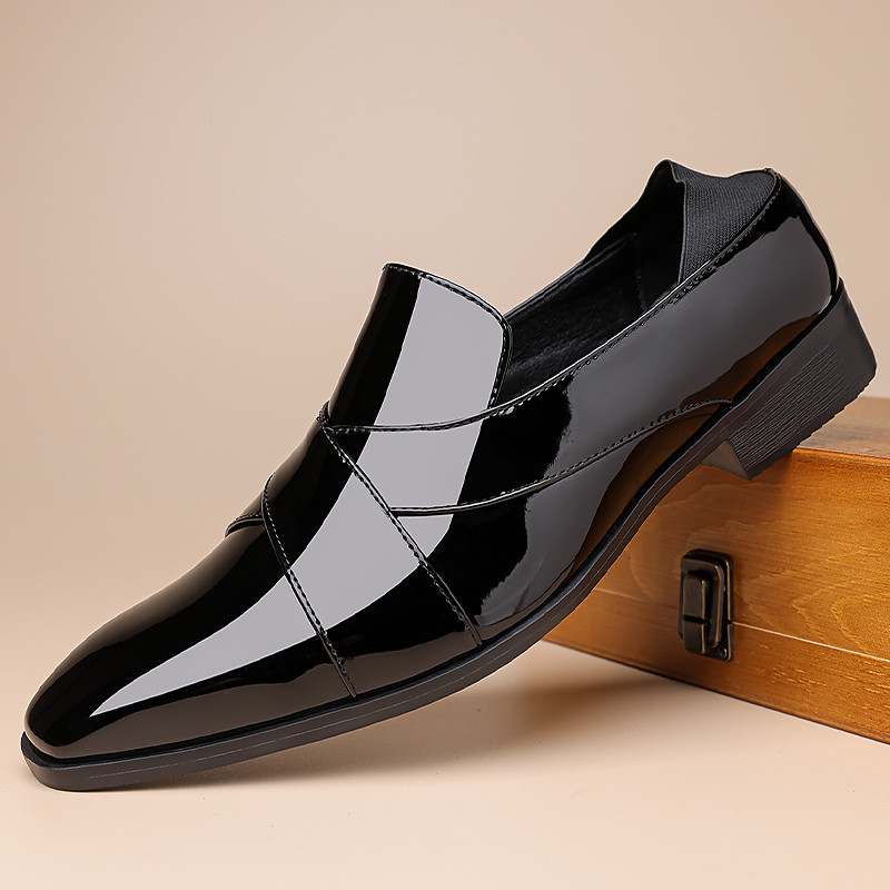 Men's Faux Leather Black Patent Dress Shoes – Sleek Glossy for Weddings Formal Events