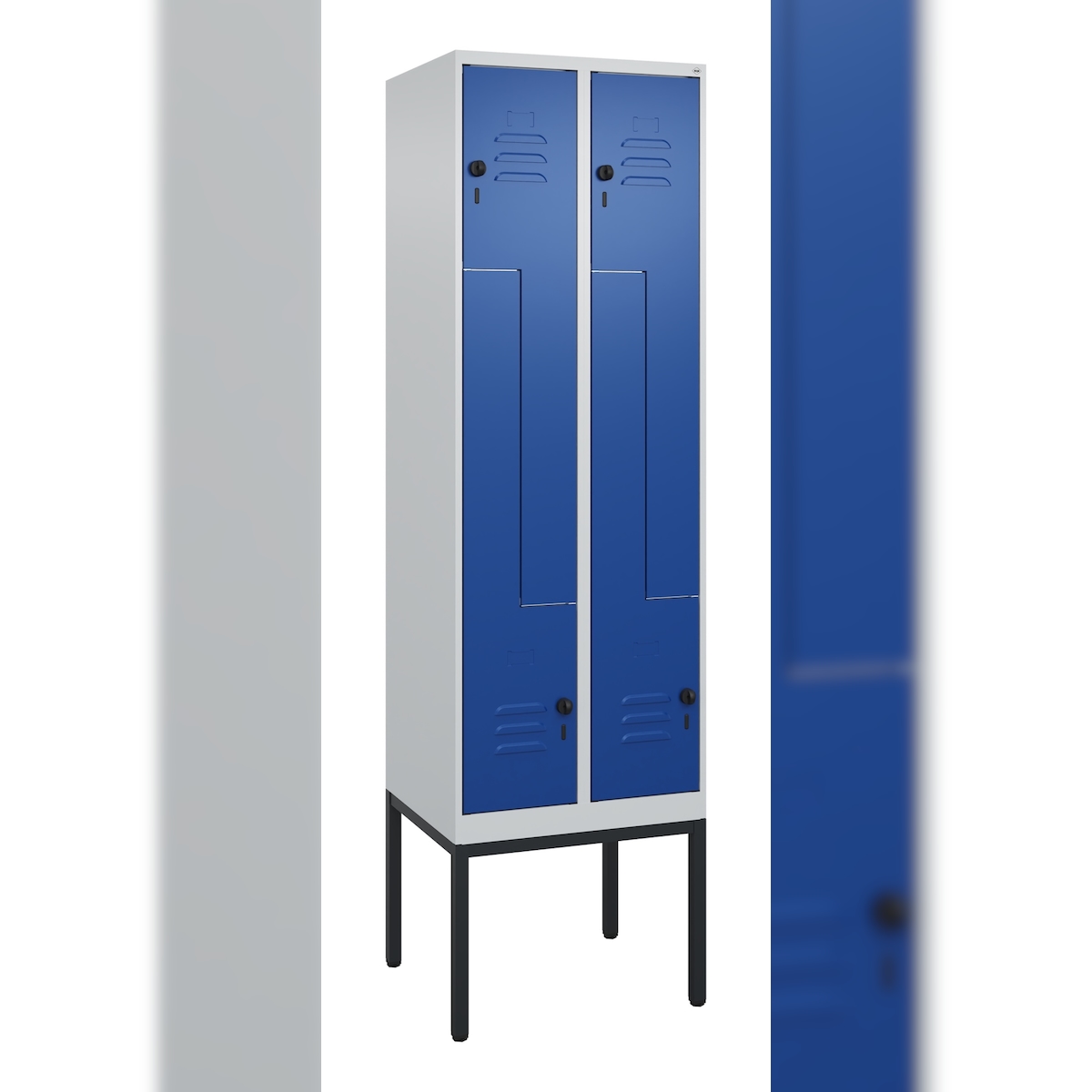 C+P Z-Spind Classic PLUS, Gestell, 4 Abteile, HxBxT 212x60x50cm, Sicherheitsdrehriegel, Hellgrau/Enzianblau von PROREGAL